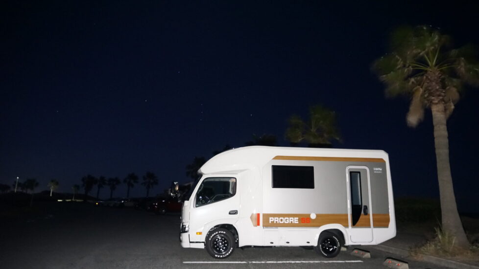 食事と温泉のあとキャンピングカープログレスの中でまったりしてると・・・