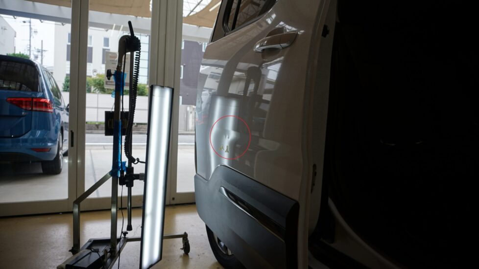 DR-Garage Okanoは、車についたヘコミを鈑金塗装せずに直す技「デントリペア」で修理します。