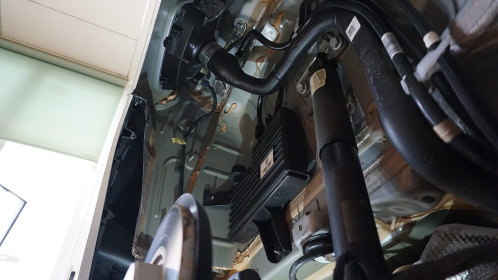 ただこのお車のリアクオーター内のタイヤハウスのカバーを外すと・・・