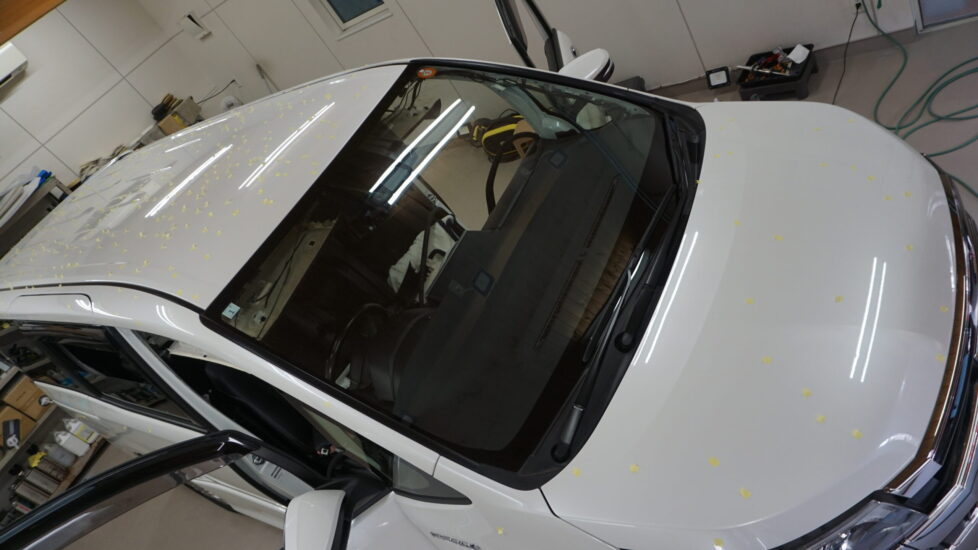 さあ内張を外したらやりたい放題・・・と言いたいところですが、ミニバンの天井は広く形も凸凹してますし・・・地道にやるしかないですね!!