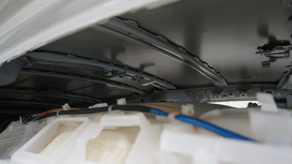 ・・・天井の内張を外すためには側面のパネルなど全部外します・・・これね意外と大変、もちろん修理が終わったら元に戻します。
