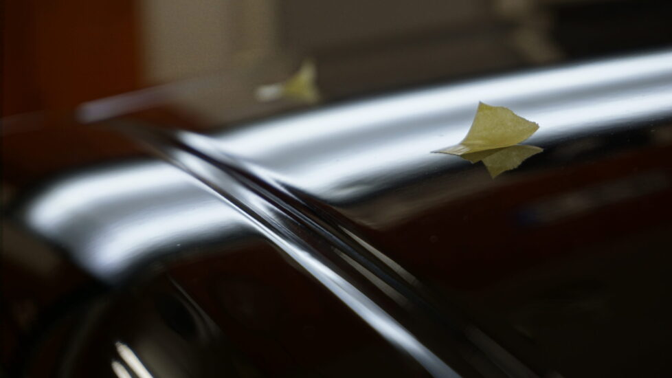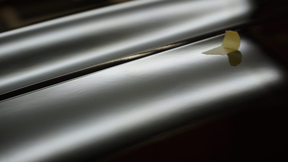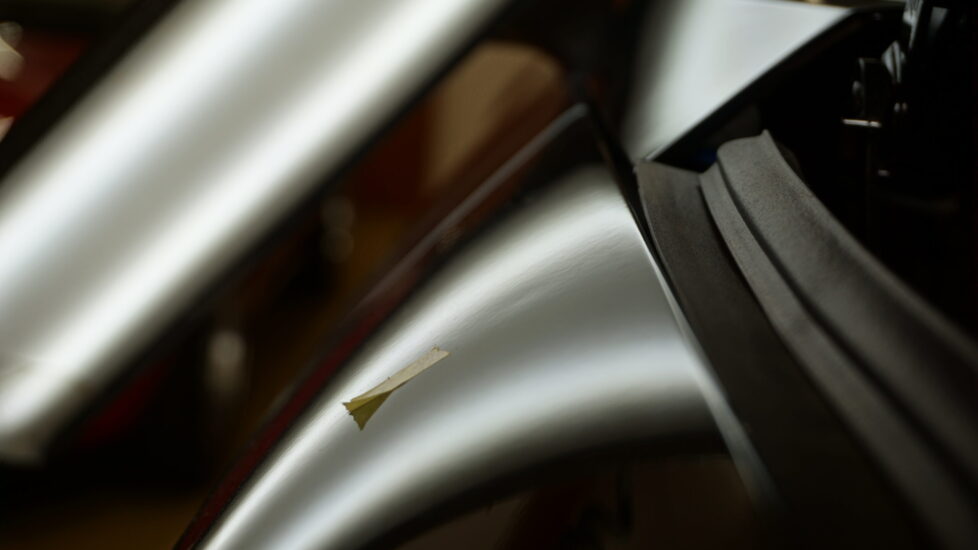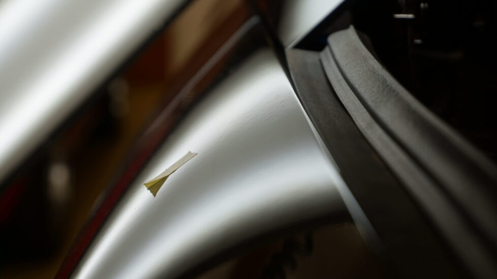 薄い凹みですね・・・でもボディーカラーは黒なので凹みはわかりますのでキッチリ直します!!