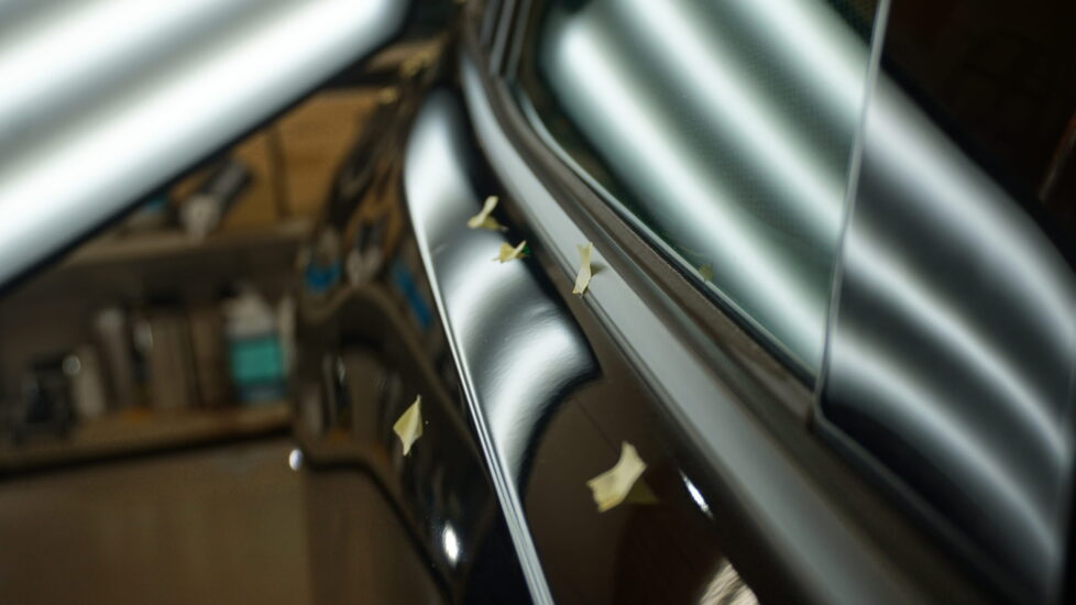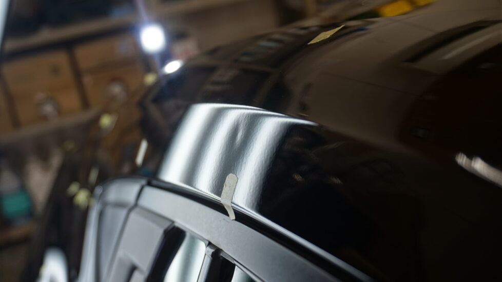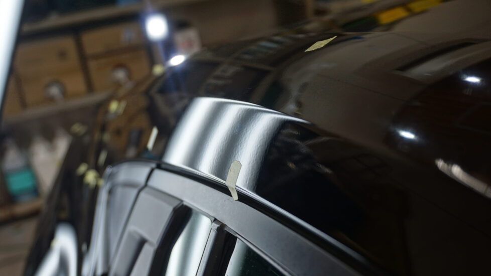 左右フェンダー、左右ピラー~クオーター、右フロントドア、左右リアドア合計69ヶ所の凹みのデントリペア+施工部分の再コーティング施工