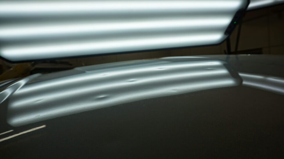 アルファードの雹被害です。ボンネットを除いて合計565ヶ所が凹んでいます。